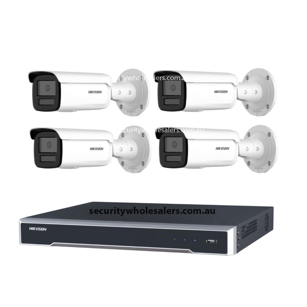 4 × Hikvision DS-2CD2T66G2H-2I 6MP Bullet Cameras (2.8mm / 4mm, Powered by DarkFighter, human and vehicle detection, 60m IR, IP67)