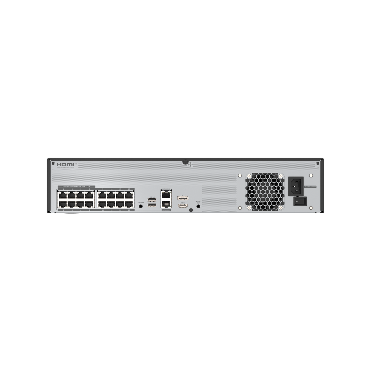 • Built-in PoE supports up to 16 cameras; additional cameras can be connected via external PoE switches