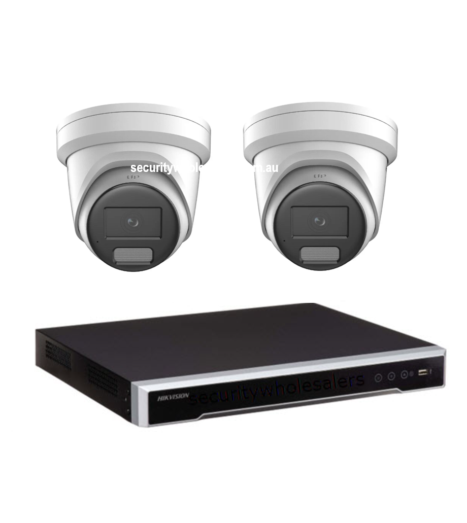 8MP x 2 Cameras | ColorVu 3.0 Hybrid + IR | Built-in Mic, Speaker, Strobe | 40m IR | IP67 | 4CH PoE NVR. NO HDD